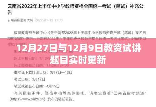 随着教育改革的不断深化,教师资格考试的重要性日益凸显,特别是在试讲环节,考察的不仅是教师的专业知识,还有其教学组织和表达沟通能力,本文将重点关注12月27日和12月9日的教资试讲题目实时更新情况,为广大考生提供第一手资料,帮助大家更好地备考。